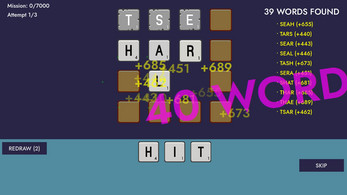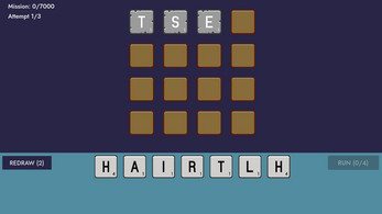 Place letters on a grid, hit RUN, and watch the cascade. Each word scores with rising multipliers and visual effects. Complete missions to permanently upgrade letters and unlock harder challenges. Strategic placement, automatic scoring, satisfying results.