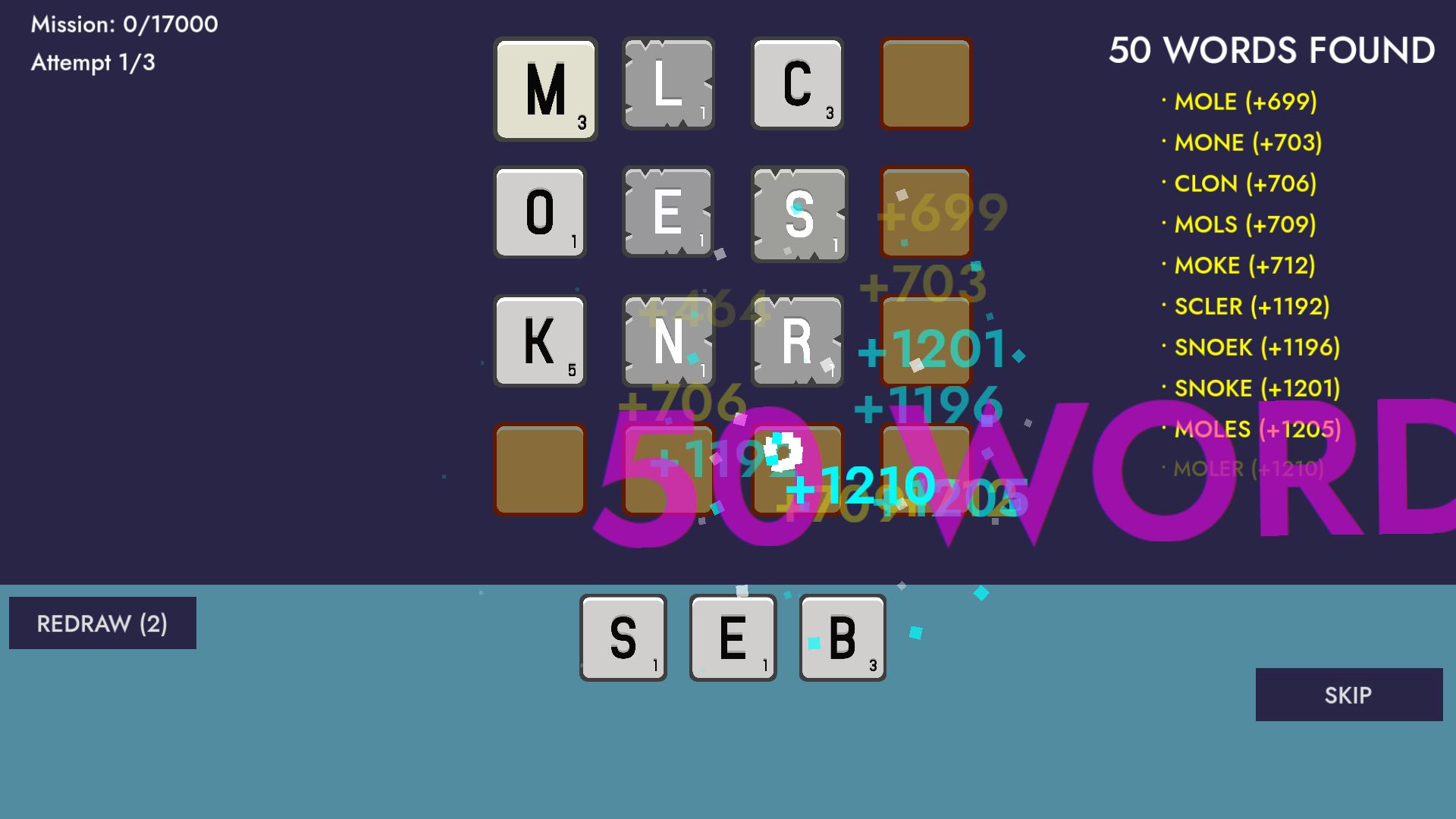 WOMBO is a word puzzle roguelike where the game finds the words for you.